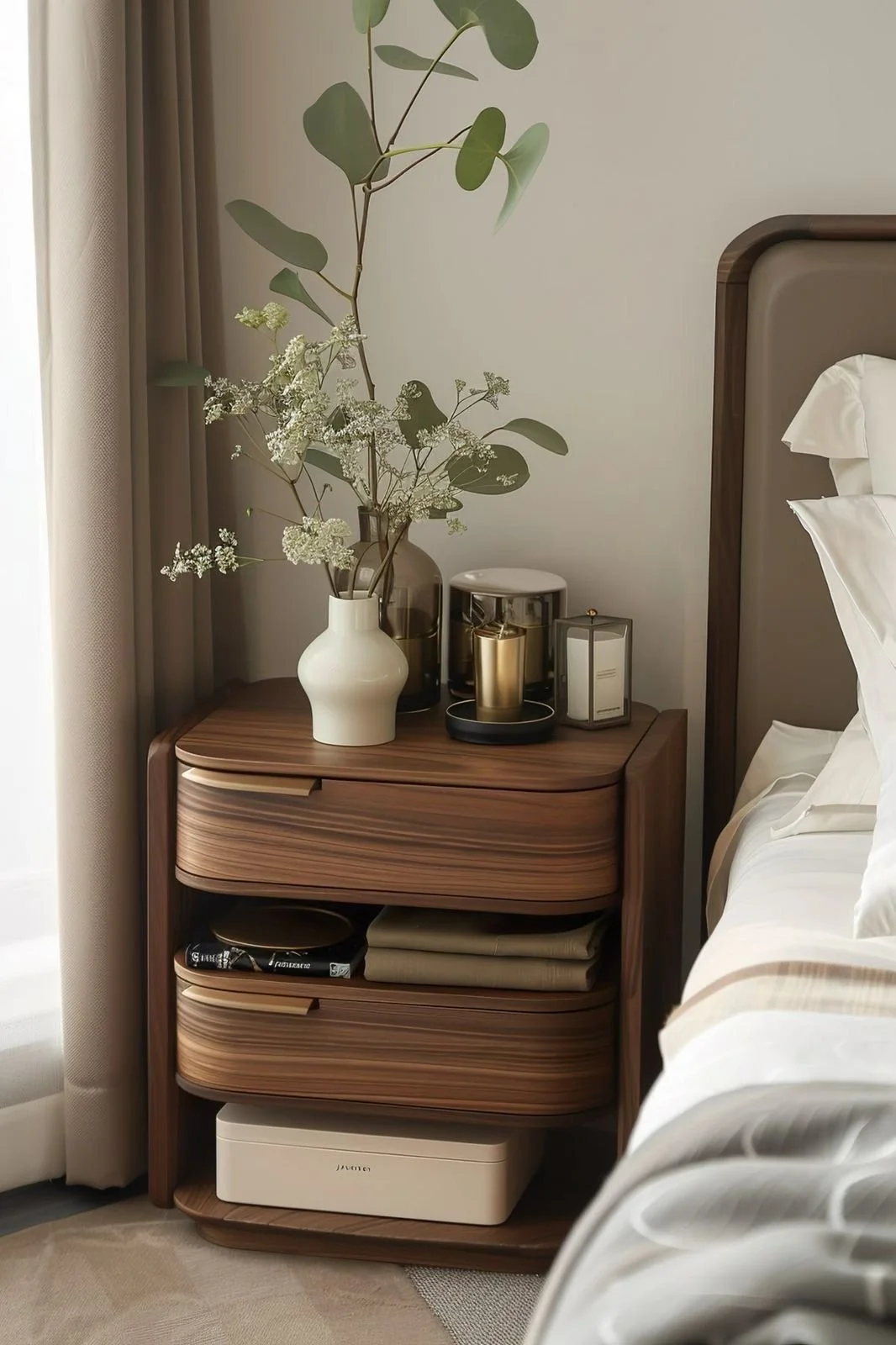 Whether you’re working with a small nightstand, an open shelf, or a bigger bedside table, remember: it’s a reflection of your life in this moment. Let it hold what’s meaningful. Let it serve you in the quiet hours. Let it be beautiful in a way that’s personal to you.
